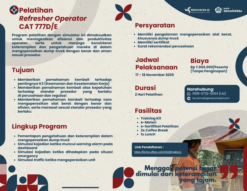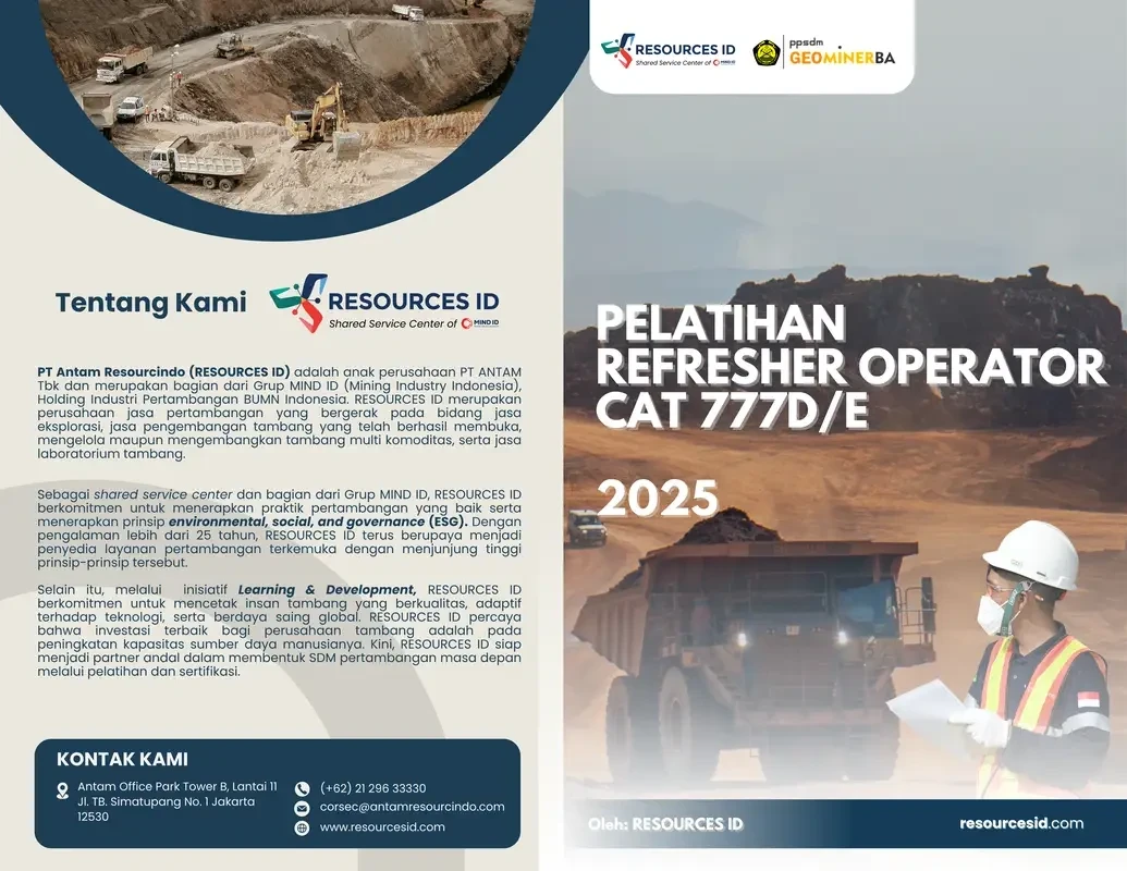 As part of RESOURCES ID's commitment to supporting the competence improvement of workers in the mining sector, the Training for Mineral & Coal Exploration Drilling Operators program is held in collaboration with the Center for the Development of Human Resources for Geology, Mineral, and Coal (PPSDM Geominerba).