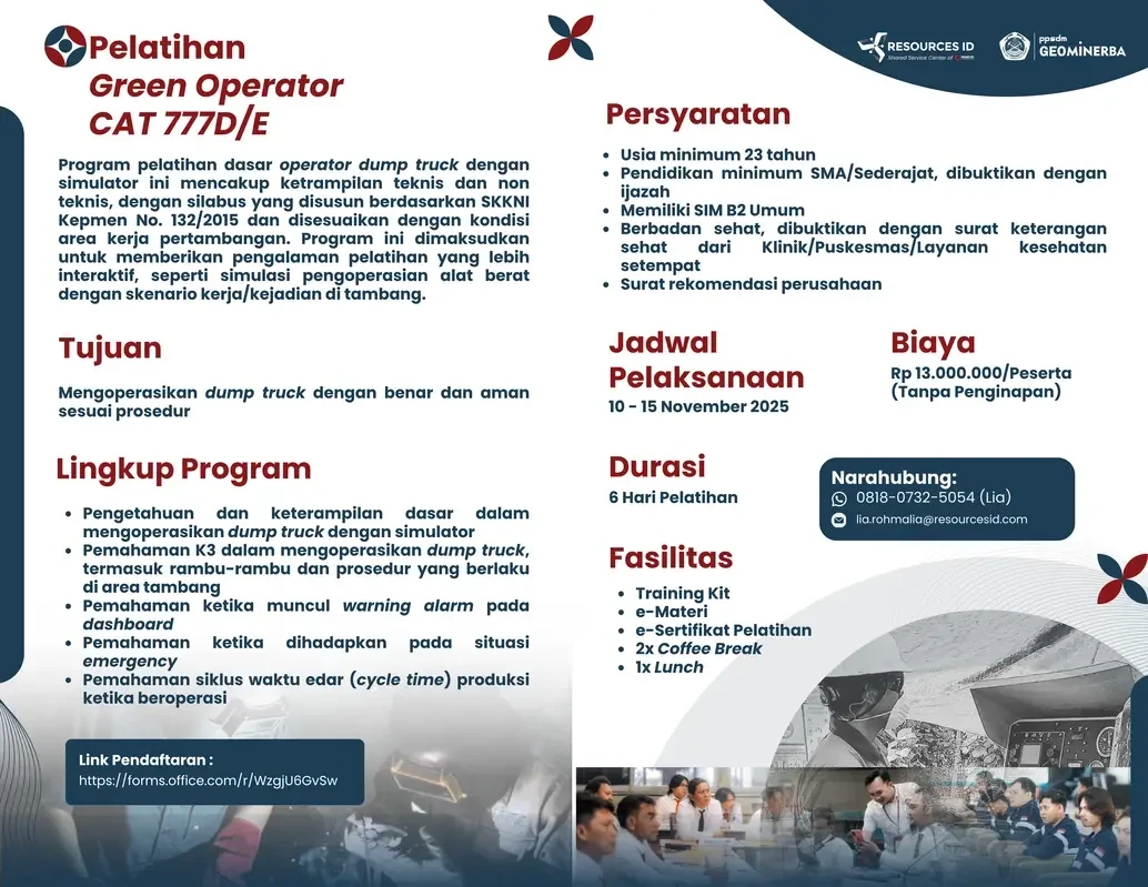 As part of RESOURCES ID's commitment to supporting the competence improvement of workers in the mining sector, the Training for Mineral & Coal Exploration Drilling Operators program is held in collaboration with the Center for the Development of Human Resources for Geology, Mineral, and Coal (PPSDM Geominerba).