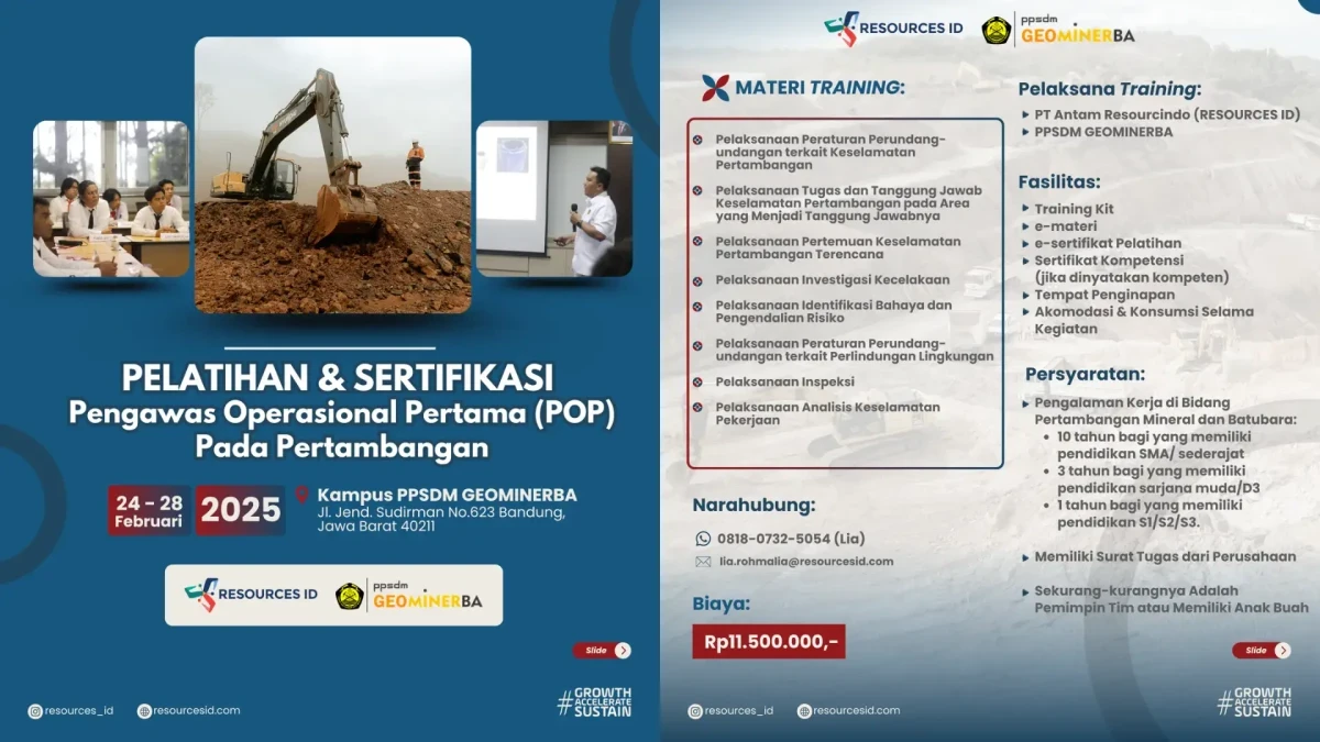 In an effort to improve the competence of workers in the mining sector, PT Antam Resourcindo (RESOURCES ID), in collaboration with PPSDM Geominerba, is organizing the Training on the Implementation of the Mining Safety Management System (SMKP).