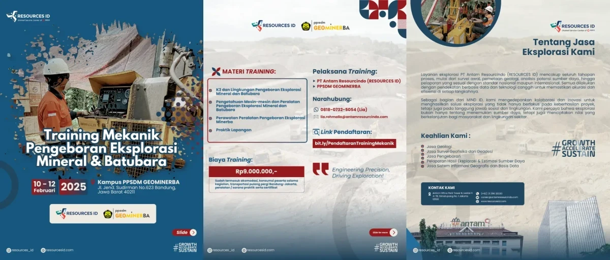 Sebagai bagian dari komitmen RESOURCES ID dalam mendukung peningkatan kompetensi tenaga kerja di sektor pertambangan, program Training Operator Pengeboran Eksplorasi Mineral & Batubara diselenggarakan bekerja sama dengan Pusat Pengembangan Sumber Daya Manusia Geologi, Mineral, dan Batubara (PPSDM Geominerba).