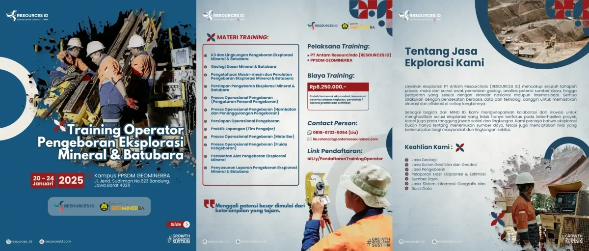 Sebagai bagian dari komitmen untuk meningkatkan kompetensi tenaga kerja di bidang pertambangan, RESOURCES ID bekerja sama dengan Pusat Pengembangan Sumber Daya Manusia Geologi, Mineral, dan Batubara (PPSDM Geominerba) menyelenggarakan Pelatihan Mekanik Pengboran Eksplorasi Mineral & Batubara.